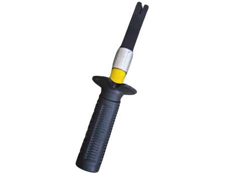 Esse modelo se destaca pela proteção máxima oferecida ao operador. O bastão mantém as mãos distantes do ponto de impacto, evitando qualquer contato direto com o equipamento que sofrerá o golpe. Ideal para operações repetitivas e de alto risco.